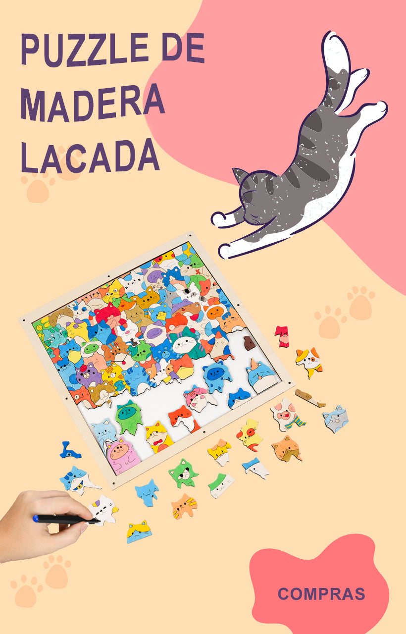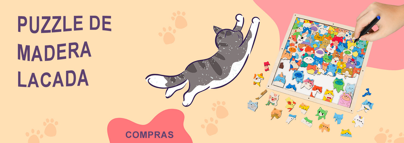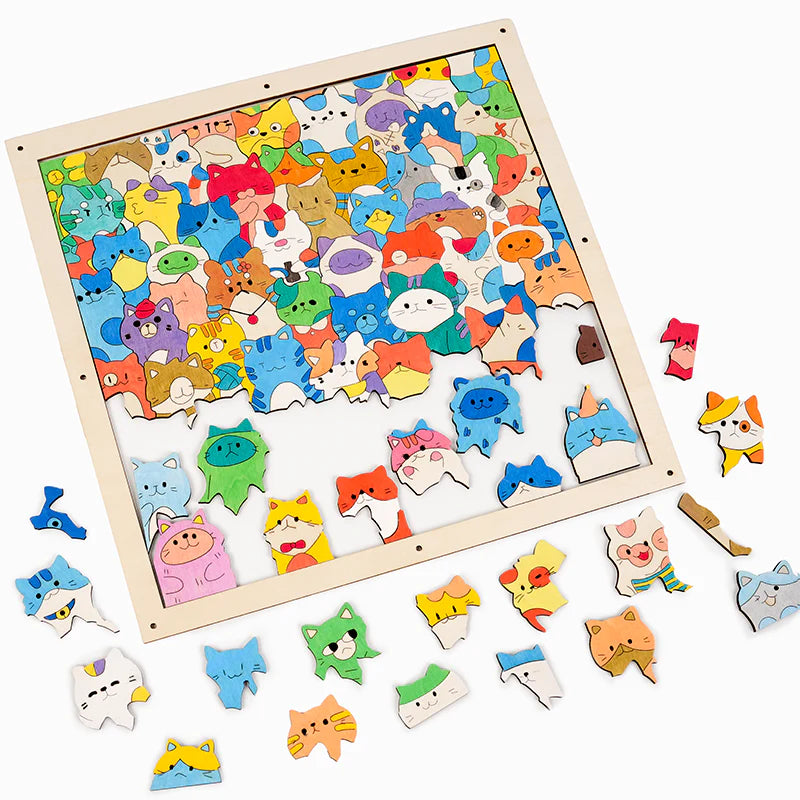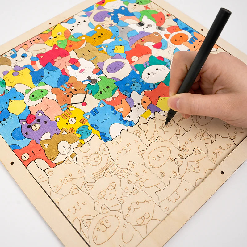 Gatitos Lineales - Rompecabezas de Madera para Colorear