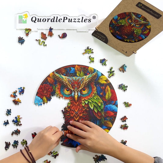 Rompecabezas de madera con forma de búho y mandala