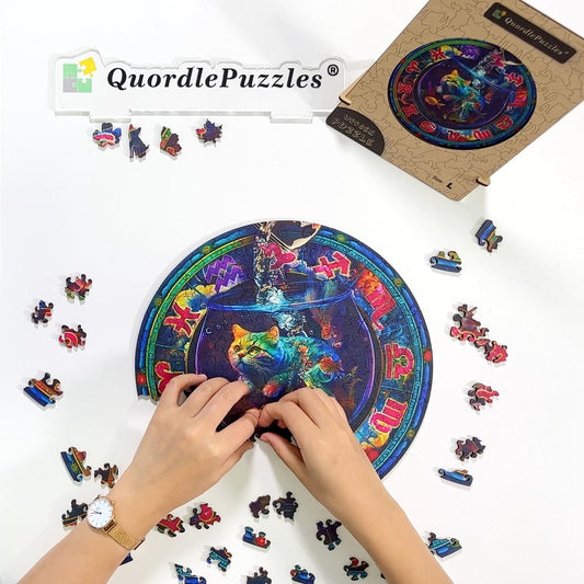 Rompecabezas de madera con mandala de gato mágico