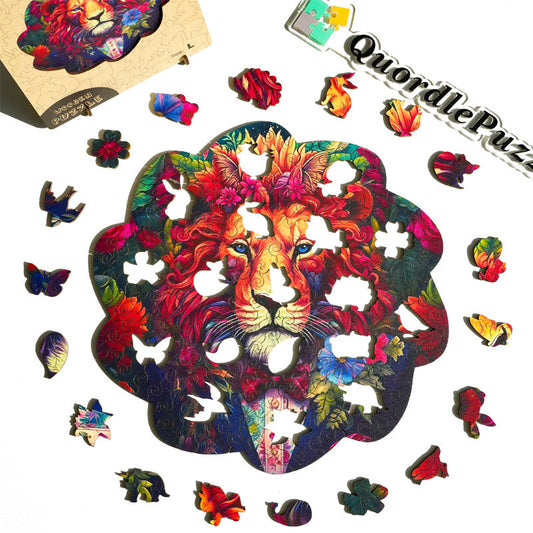 Rompecabezas de madera con diseño de búho y león entre flores