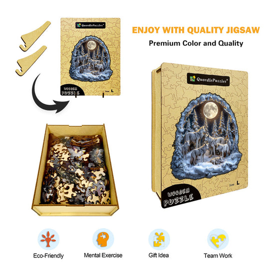 Puzzle de Madera Manada de Lobos a la Luz de la Luna Nevada