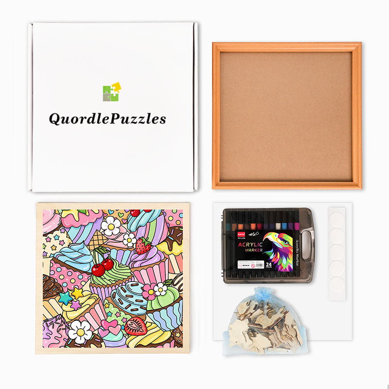 Cupcakes lindos - Rompecabezas de madera para colorear