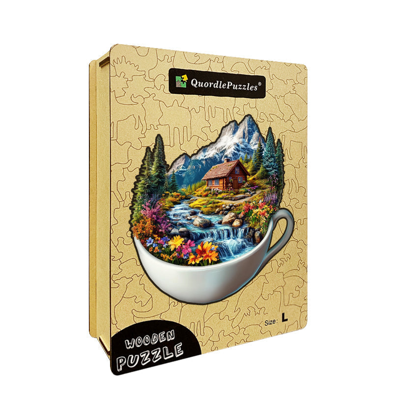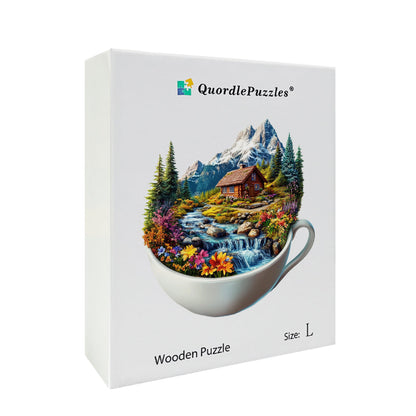 Puzzle de Madera Cabaña de Montaña en una Taza