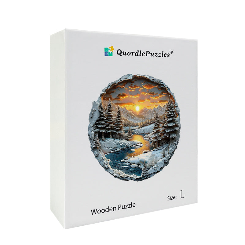 Rompecabezas de madera Atardecer invernal en las montañas