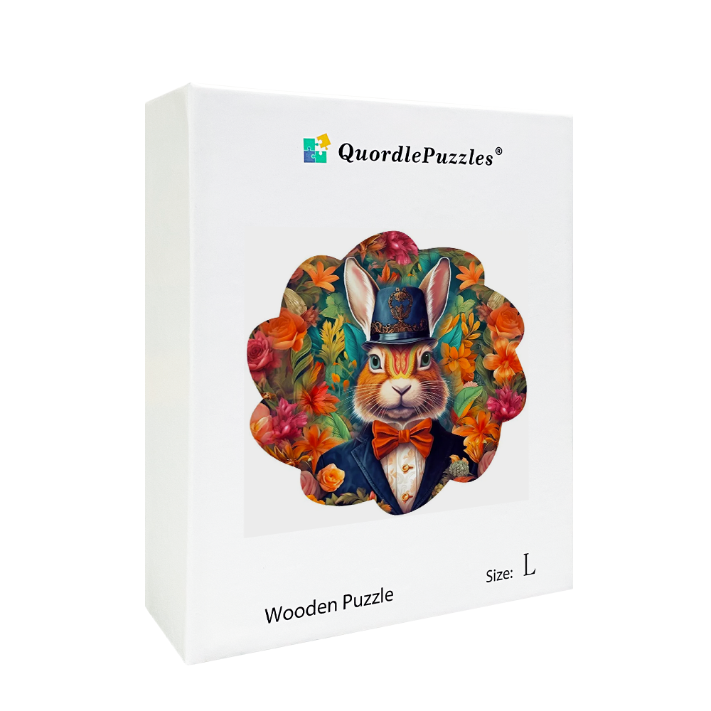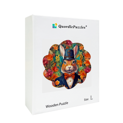 🔥Último día 86% - rompecabezas de madera de búho y conejo elegante con pajarita