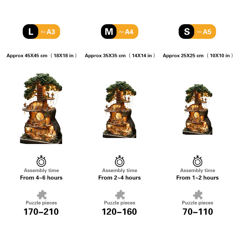 | tamaño:M(A4) | Aprox. 35 x 35 cm (14 x 14 pulgadas) - 120 a 160 piezas, tiempo de montaje de 2 a 4 horas. |