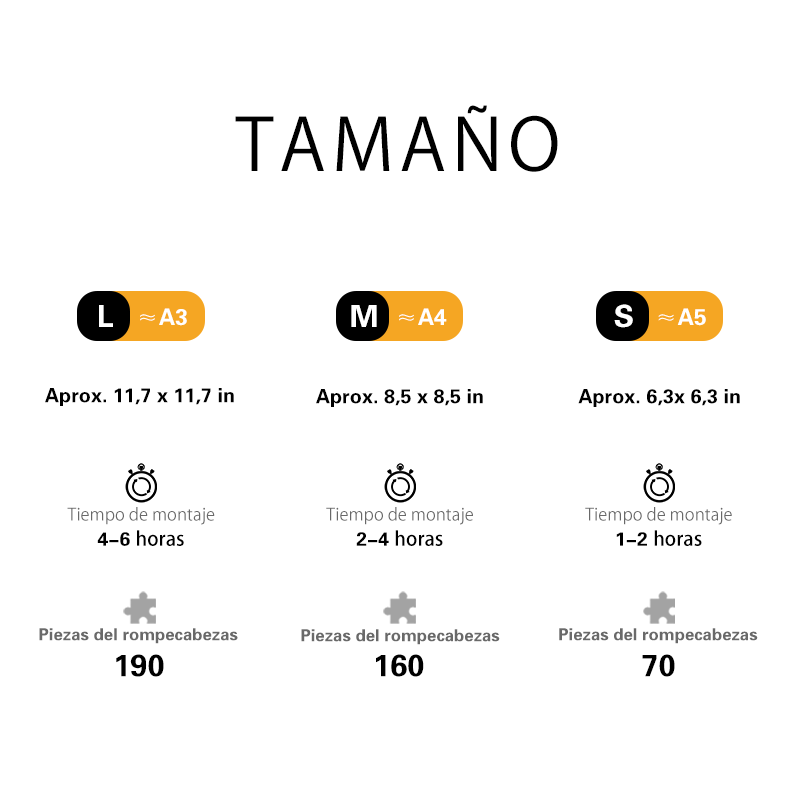 | tamaño:M(A4) | Aprox. 21 x 21 cm (8,5 x 8,5 pulgadas) - 160 piezas, tiempo de montaje de 2 a 4 horas. |